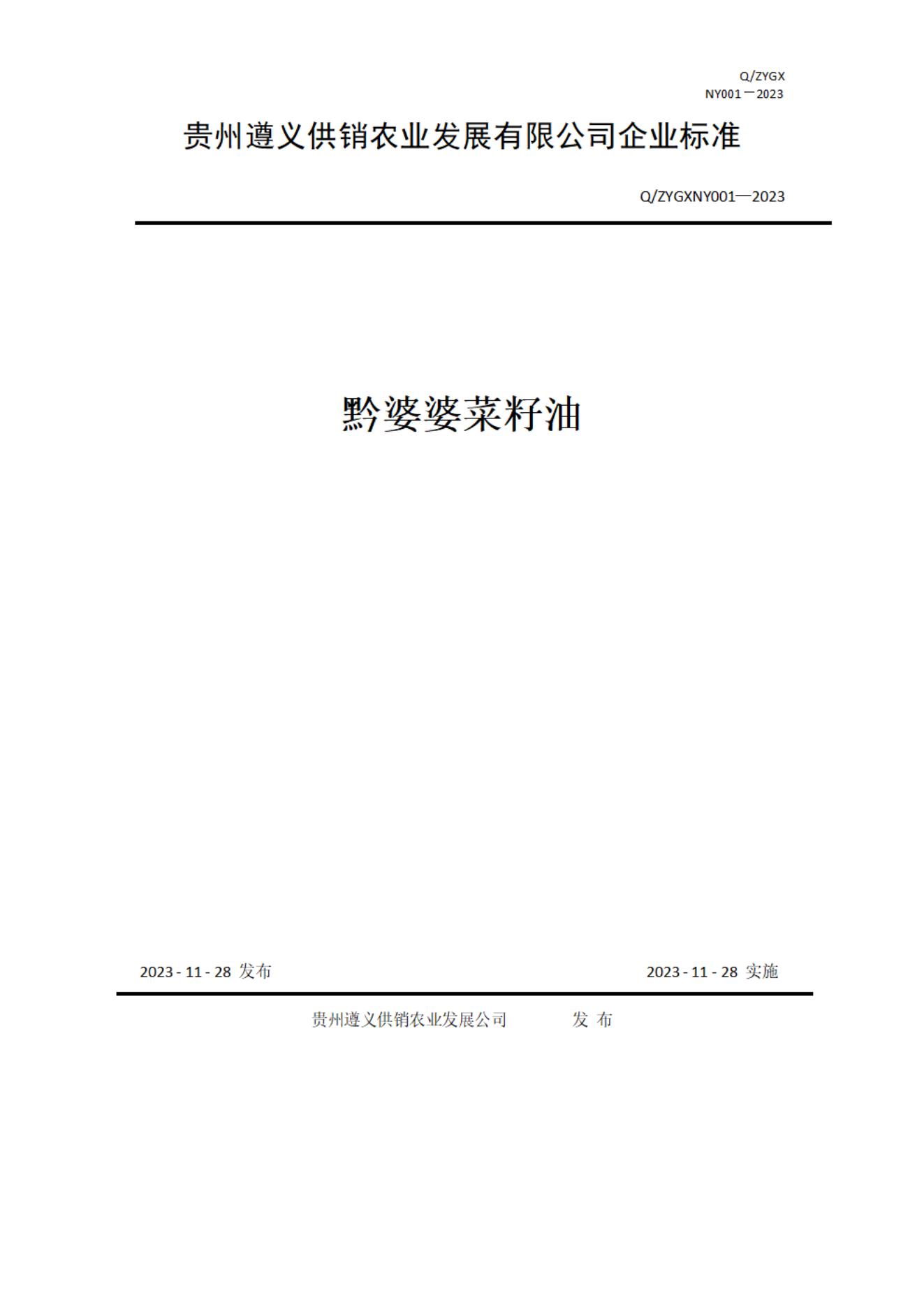 貴州遵義供銷農(nóng)業(yè)發(fā)展有限公司企業(yè)標(biāo)準(zhǔn)